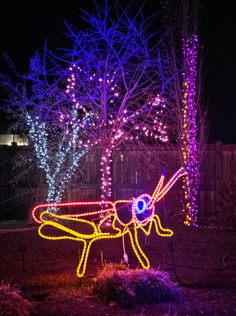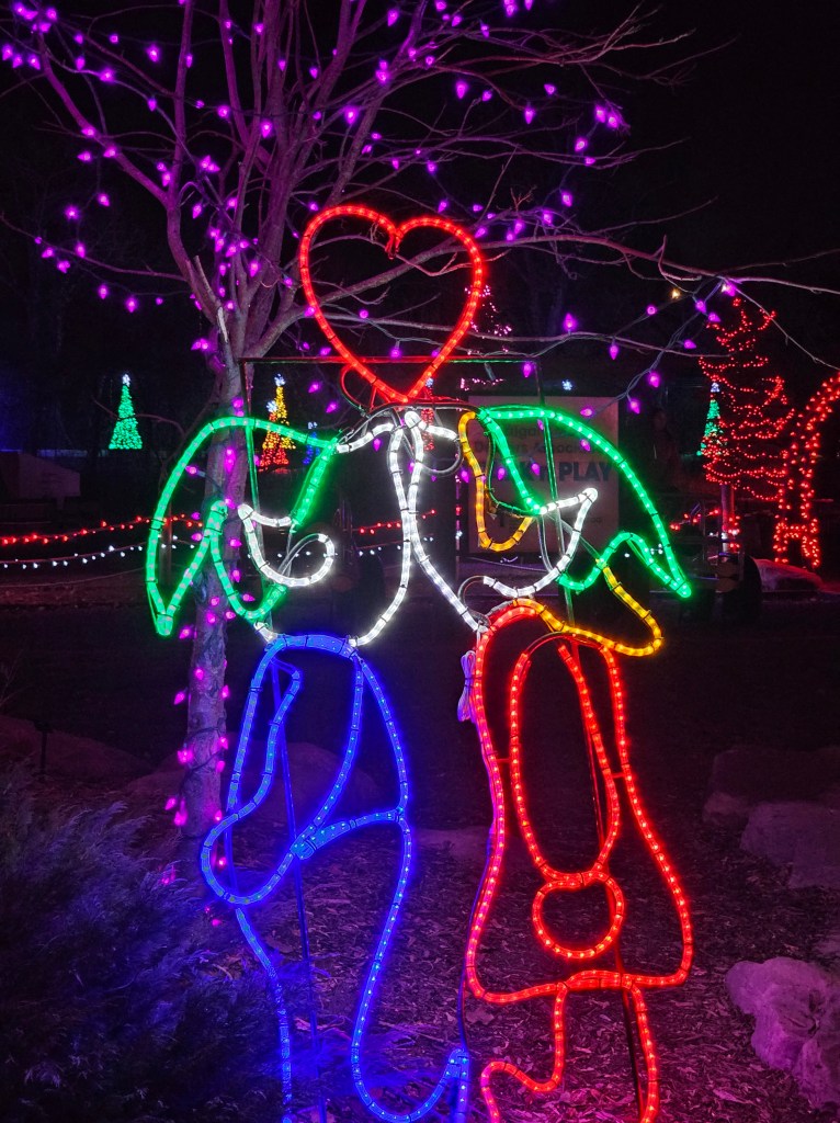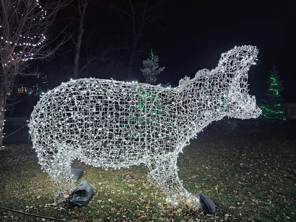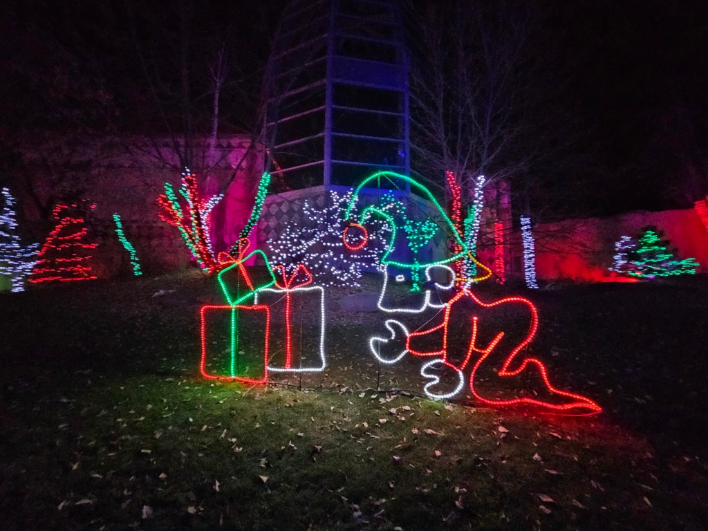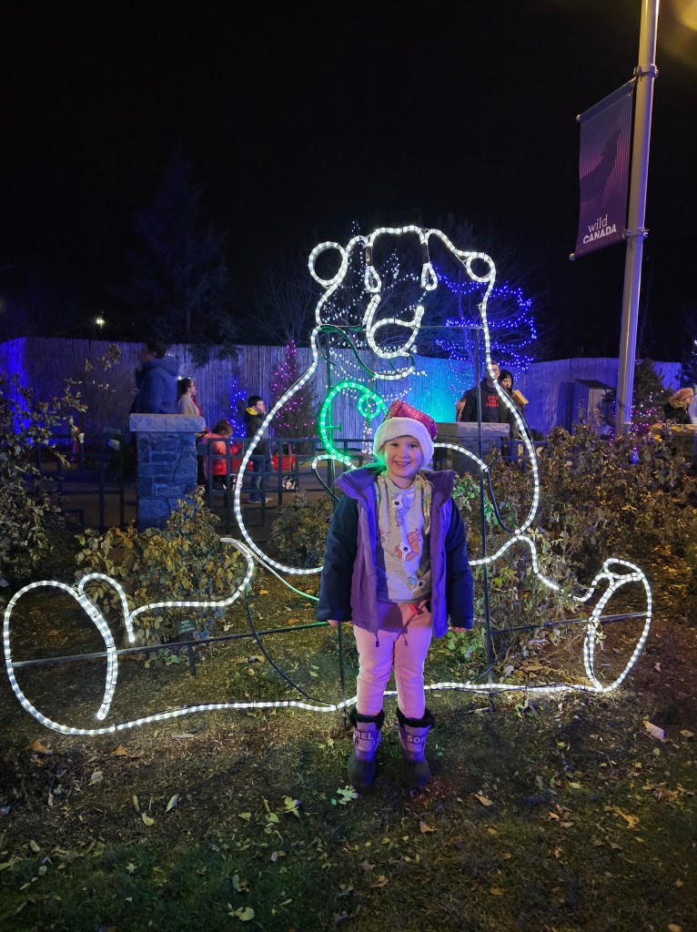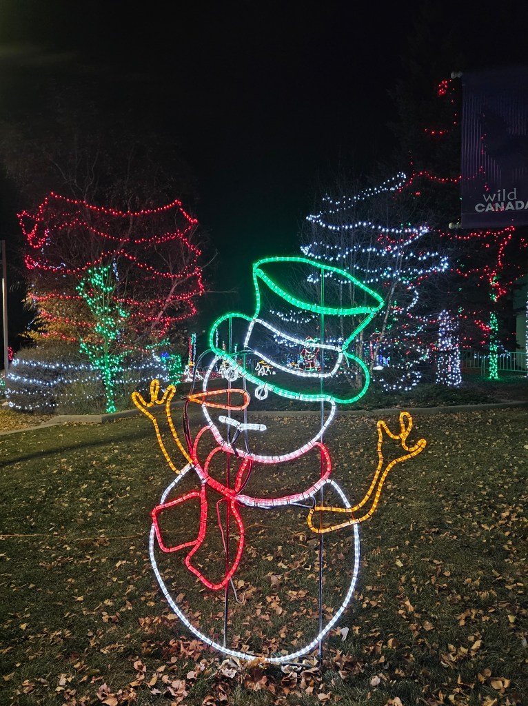 The temperature was in the double digits yesterday, 16.8C, so my brother Bradley and I decided to see the zoo lights at the Calgary Zoo with my niece and nephews. The doors open at 5 and close at 9, but my brother is a volunteer fireman and was attending a huge grassfire outside of town and couldn’t get away right away.