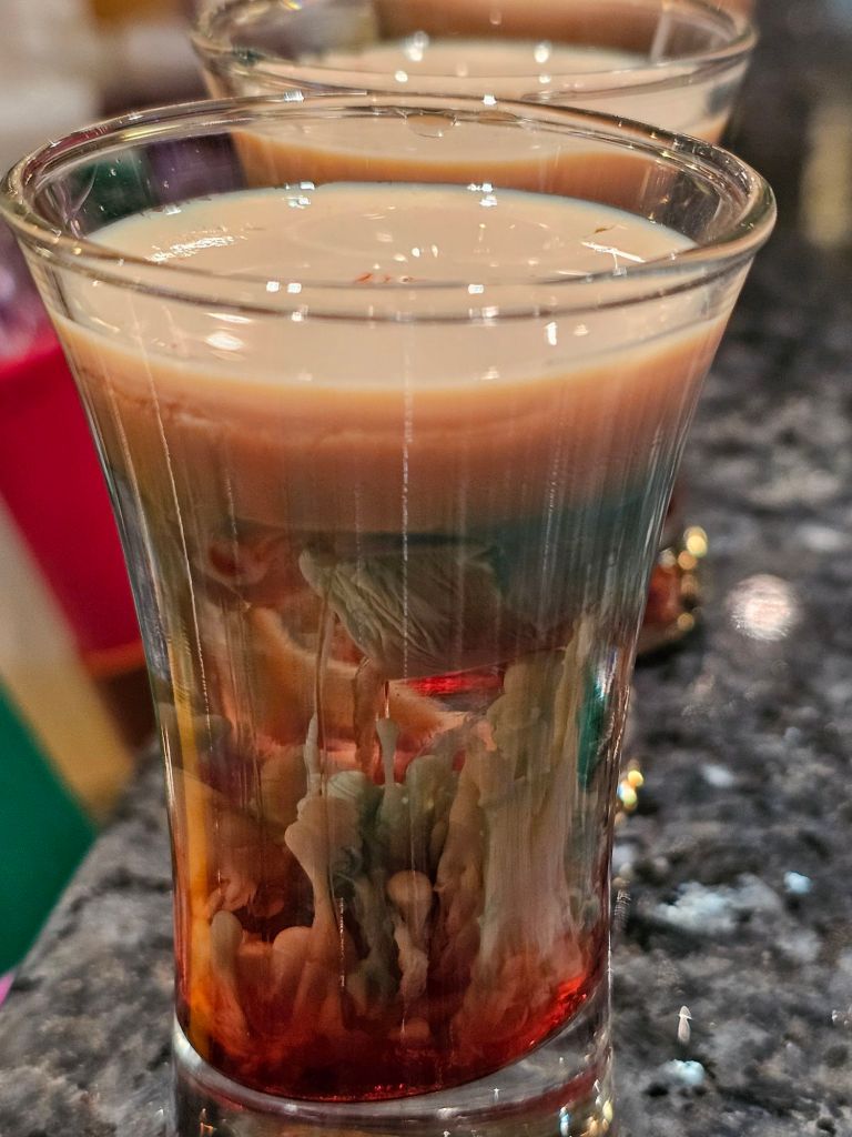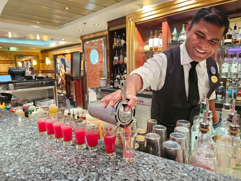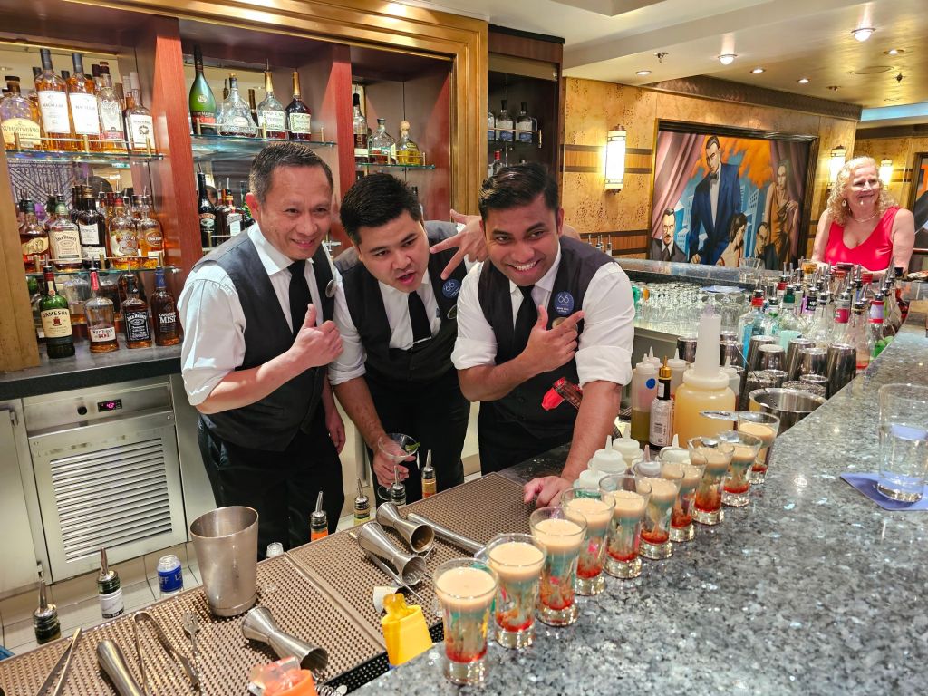 Three of us headed to Gatsby’s Champagne bar to meet a few others. There was no champagne to be had, but many other tasty drinks that our fabulous bartenders Rico, Hans (solo) and I Don’t Know were delighted to create for us and anyone close to our orbit that wanted to join in.