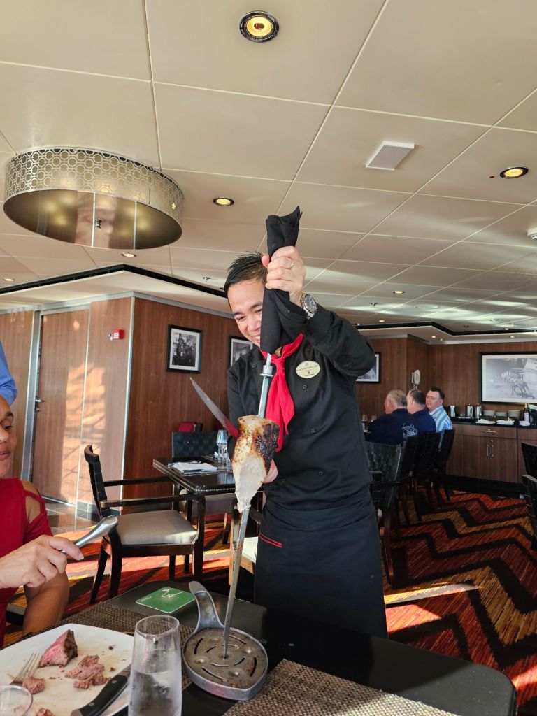 Later, I joined Mary and Susan at a specialty restaurant, Moderno Churrascaria, a Brazilian steakhouse. My reservation was zn hoir after theirs, but the helpful hostess was able to squeeze me in with them.
