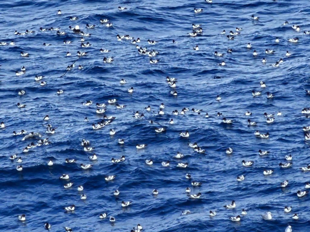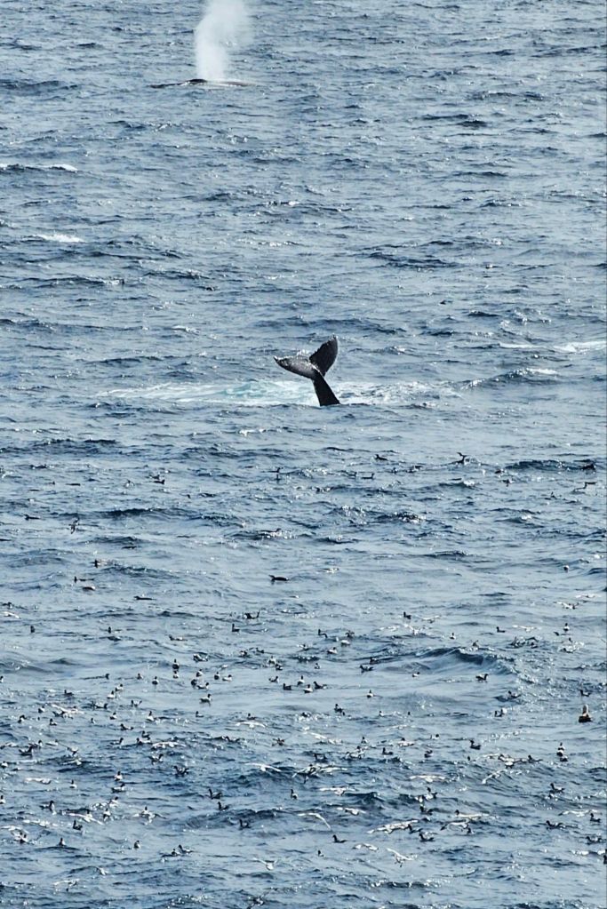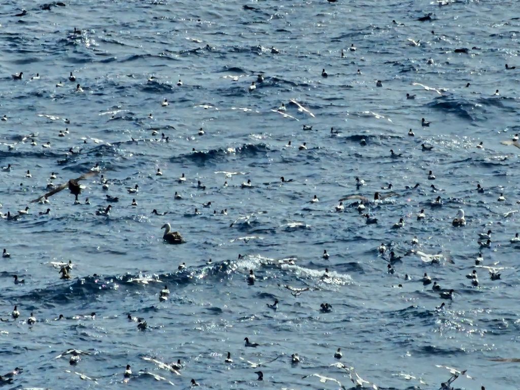 Thousands of birds, mostly albatrose and comrades, following the whales feeding on the stunned krill. I didn’t know where to point the camera at times because so much was going on.