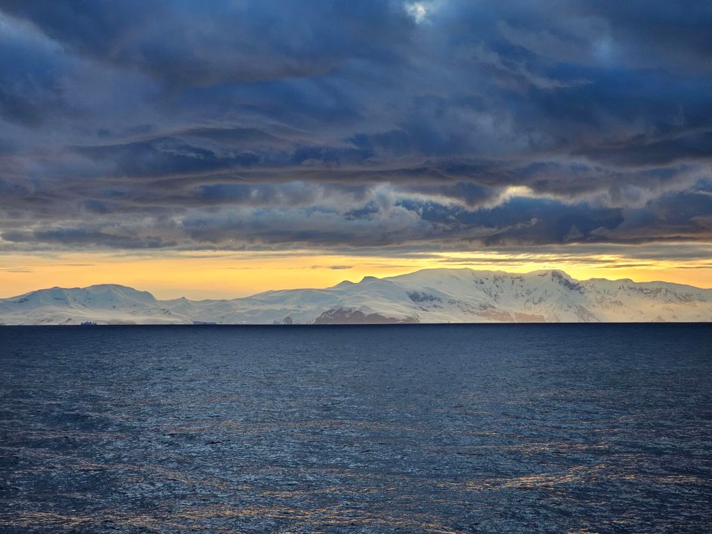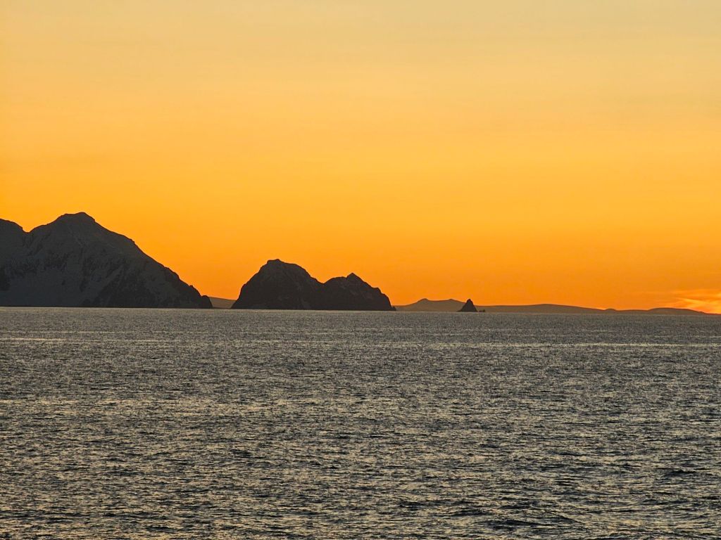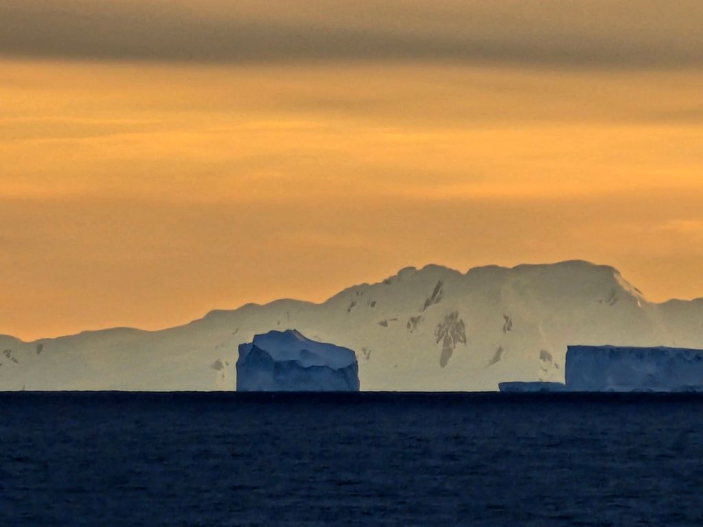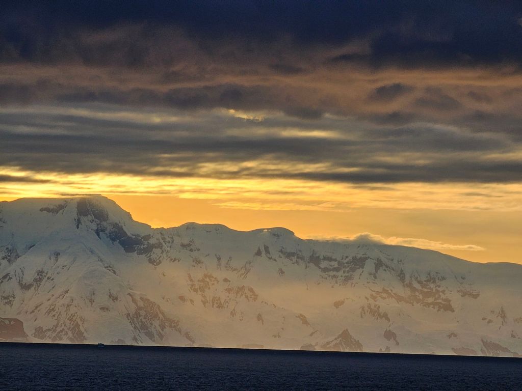 The next morning, I got up at 4 am. to check out my first sunrise on my final continent. It was worth getting up to almost empty decks and the yellow and orange glows highlighting the icy continent.