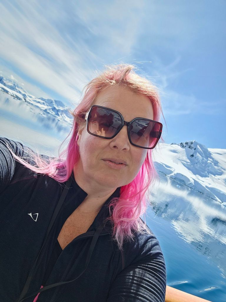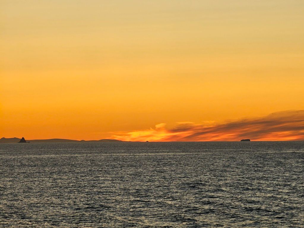 After a full day outside, my lips are burnt, and my face has a little colour from the very strong sun. There is a huge difference between the sunny side and the shaded areas of the boat. Layers are essential.