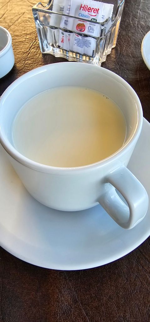 Day 2, I had a tour with an 8am pick-up, so she said she’d make me my tea very fast. We cleared up that there should be water with a little milk.