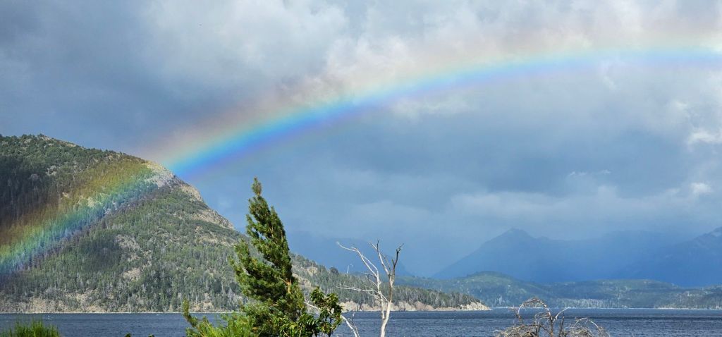 Because of the weather, we stopped for pictures in lake order 2, 3 ,4 ,5, 7, 6 ,and 1. I traveled north from Bariloche around Lago Nahuel Huapi. Because of the clouds and light rain in the area conditions were perfect for 🌈 to appear.