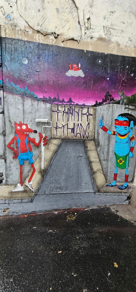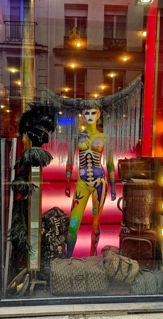 One thing I noted, besides the large number of tents set up by those who can’t afford the steep rental prices, is the creative manikins in many stores don’t look like many from North America. And the wall graffiti also includes mosaics and other bits of 3d art.
