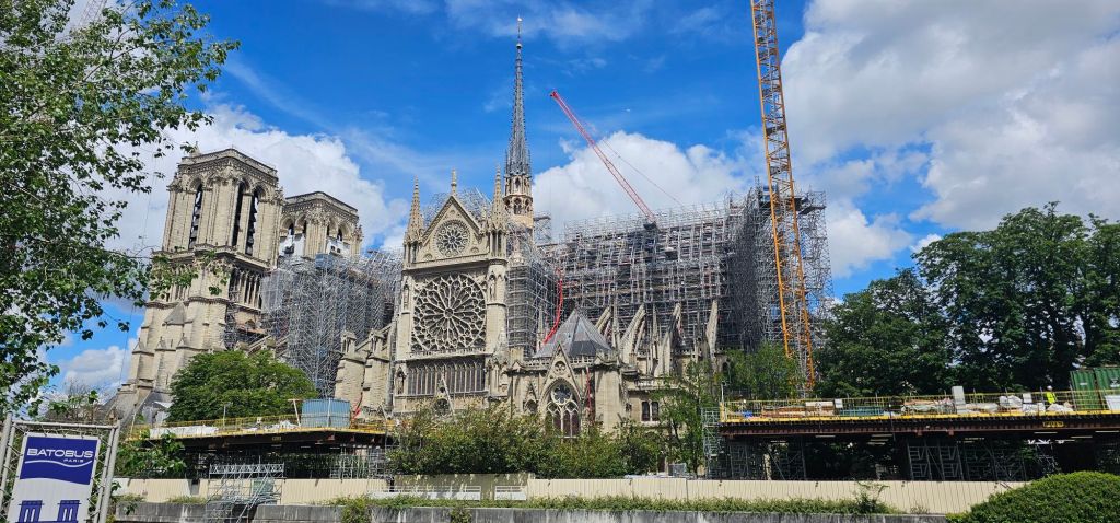 Unless you’ve been living in a box everyone heard about the tragic fire that pretty much destroyed the Notre-Dame 5 years ago. There are some arguments for the cause but most agree faulty electrical maintenance is the culprit. The roof was constructed of 850-year-old oak- ready to burn with the slightest provocation. The fire was so hot that everything not stone inside the building melted and even the restoration scaffolding outside warped and melted.