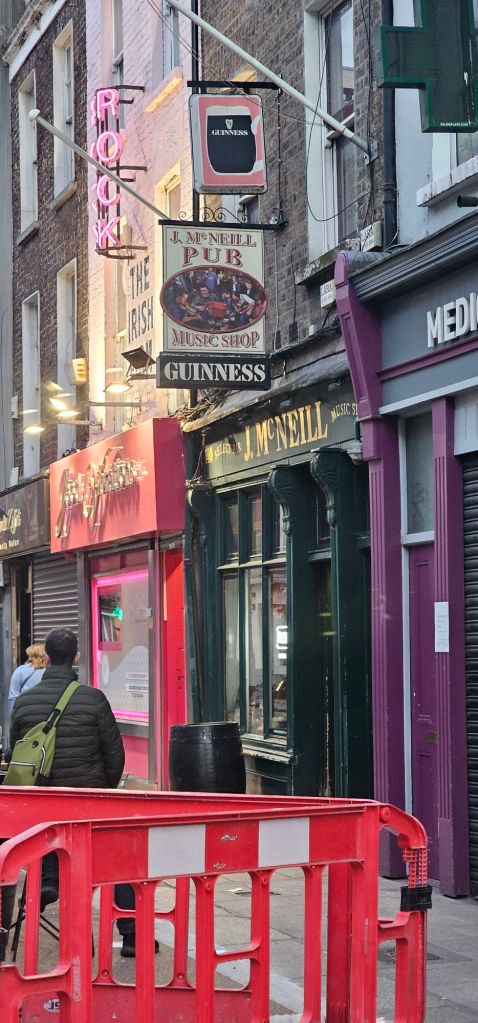 The evening involved a pub crawl with craft beer, whiskey, and even a local gin. The beers at the Black Sheep, which only sells craft beers, were a lager, an Irish red (my favorite), and an IPA. We headed off to another pub, Jack Nealon, for a Guiness. At our third stop, Slattery’s Bar, I got the whiskey with lemonade and their veggie soup of the day with soda bread. Desert was a gin and tonic. I must admit I hate tonic water, so I took one sip and gave up.