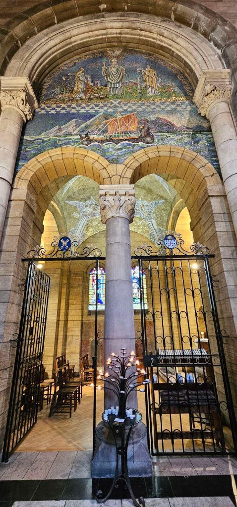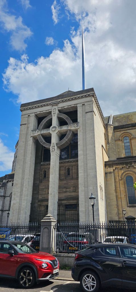 In the center of the cathedral lies the Spire of Hope, which looks like a giant needle sticking out the top. On the side of the cathedral, there is also a giant celtic cross. The largest one in Ireland.