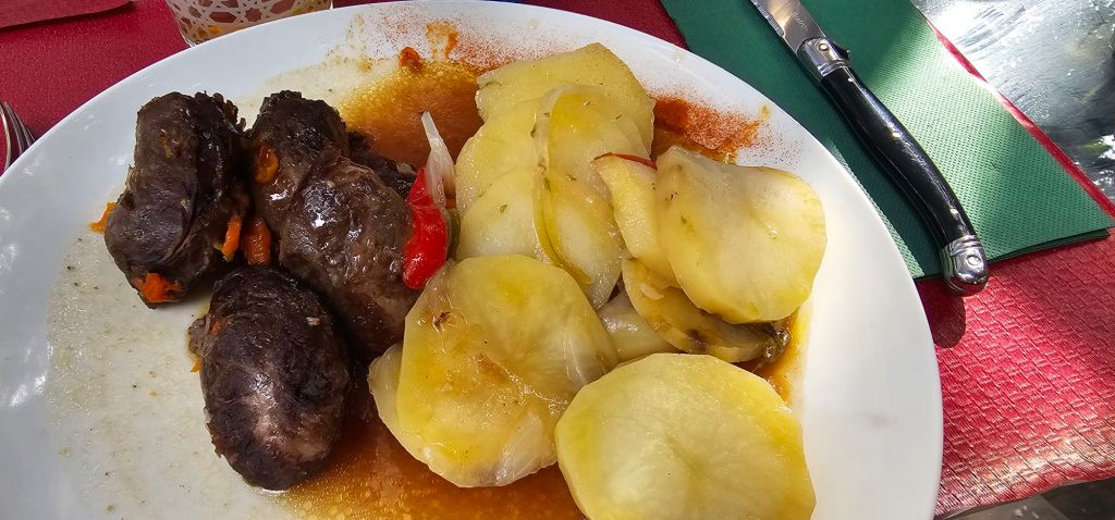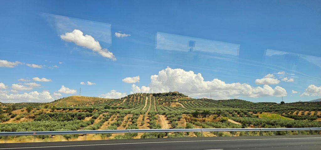 After a shorter drive through olive fields, the bus came to the ‘Santorini ‘ of Spain, where I got to try the local delicacy of pig 🐷 face. Or rather the cheeks of the animal.