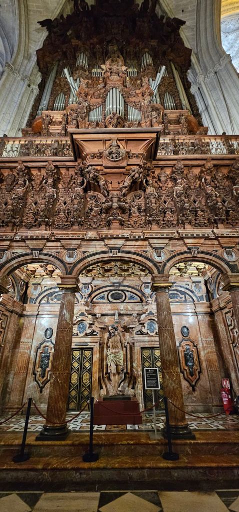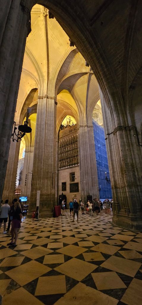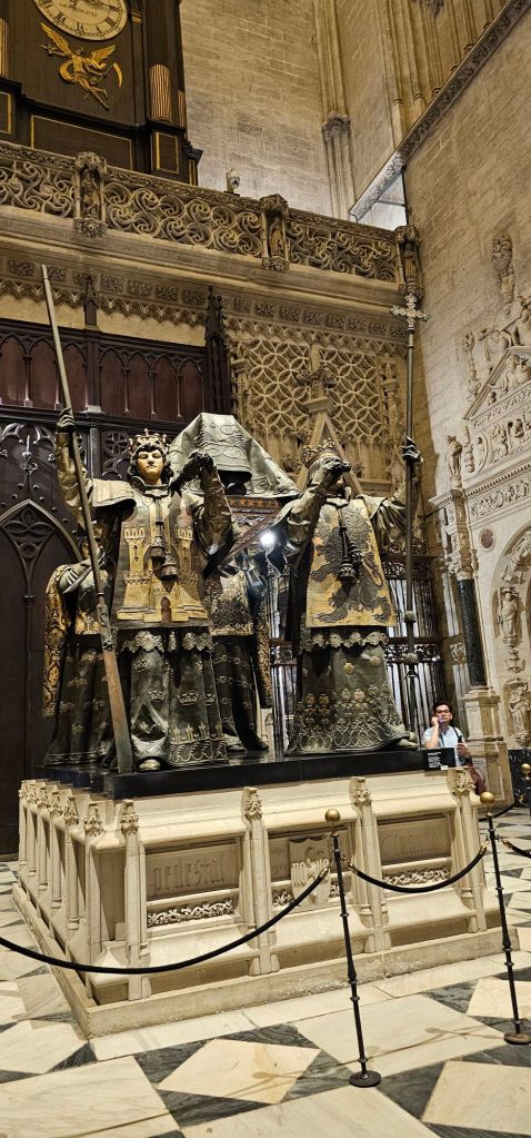 First, I visited the Seville Cathedral, the largest Gothic cathedral, and the third-largest church in the world. It was completed in the early 16th century, and now the cathedral halls serve as the Royal Chapel, the burial place of the kings for over a century.