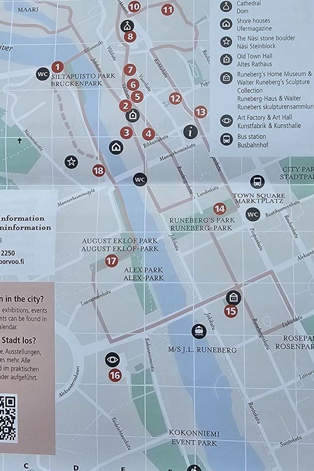 Once I arrived, I thought there would be a tourist map, but no go. There are some about a ten minute walk away at the old toem of Porvoo, so I recommend using the buses free wifi to check out the direction on google Maps before you get off. But straight ahead and to the right is the general direction.