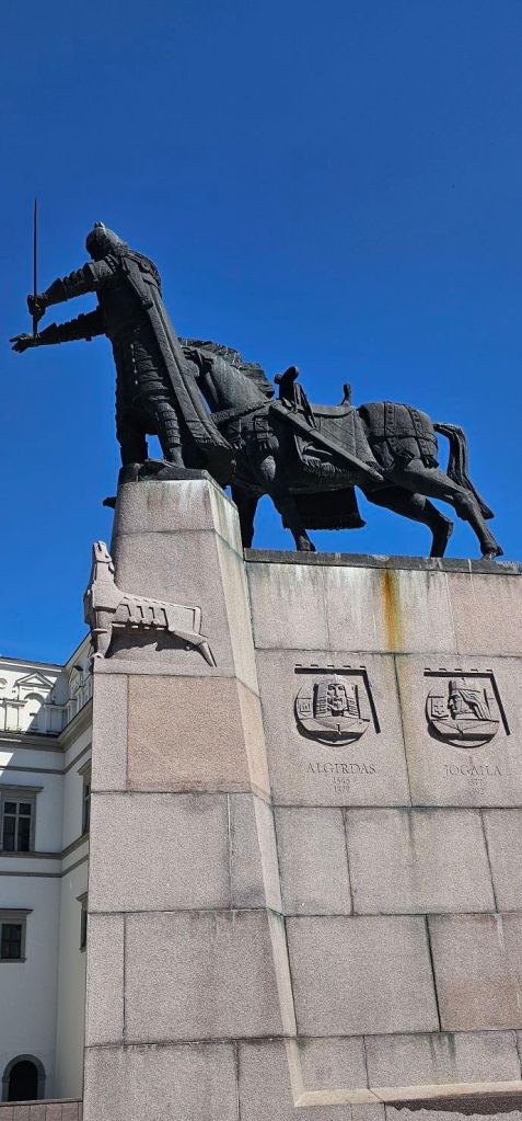Out front is the monument to Gediminas. He was a grand duke and lived from 1275-1341.
