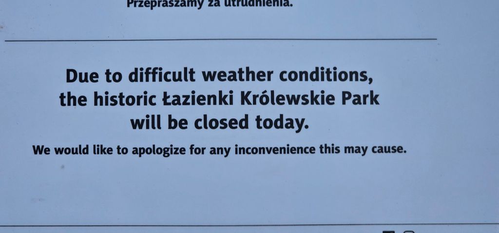 My day two in Warsaw didn’t work out as planned. There is a historic park that has several churches, monuments, and palaces that I planned to visit. In fact, I made the hour walk there only to find it closed.