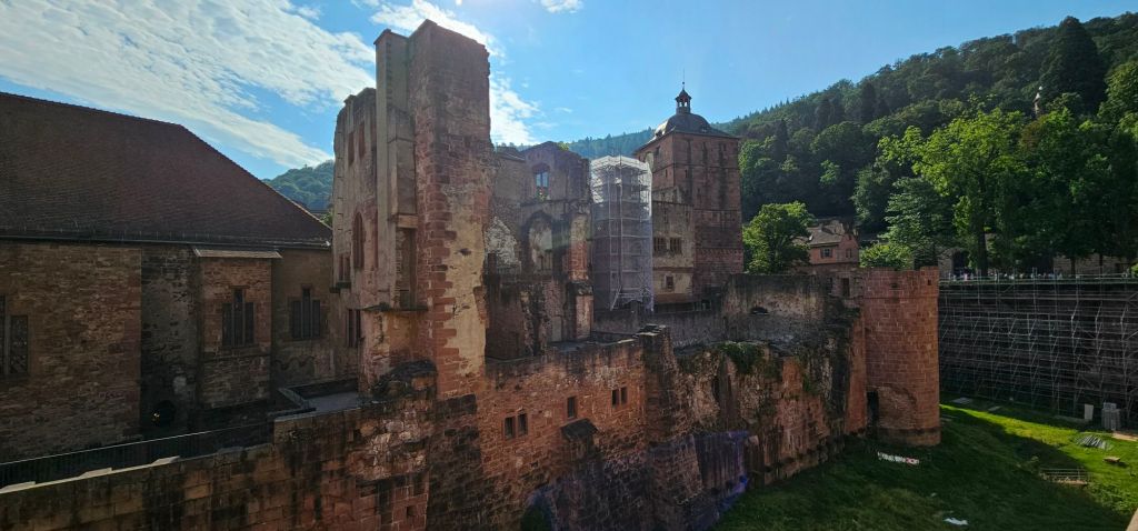 The Heidelberg Castle ruins, Schloss Heidelburg, sits above the city and was built and expanded between the 13th and 17th centuries. The Thirty Years’ War and the 1689 war with France destroyed most of the castle, and it was never rebuilt.