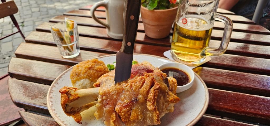 At this point, it was lunchtime, and since I had skipped breakfast, I was starving, so I decided it was a good time to order the pig knuckle. It came with saurkraut and what I can only describe as a mashed potato stuffing ball. It is huge meal and even starved, I couldn’t quite finish it all.