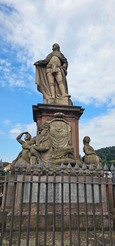 At the start of the bridge is a statue of a monkey holding a mirror. It is called Bruckenaffe. It reminds city dwellers and those across the river that neither group was more elite. Apparently, a statue has stood here since the 15th century, but the current monkey has only been there since 1979.
