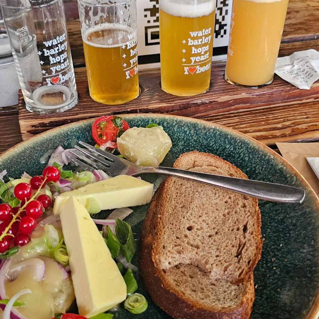 For lunch, I tried the local craft beers, which were all types of IPAs (this seems to be the most popular kind of new beer here) and handkas with music. It is a typical pub dish in Frankfurt that has a cow cheese marinated in vinager-oil-onion and served with bread, butter, and caraway seeds. I was expecting it to be really pungent, and it wasn’t, but it definitely is an aquired taste.