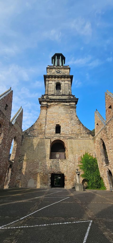The Holy Cross Church (Kreuzkirche) is the oldest one here being built in 1284. Again, the interior, after being repaired from WWII bomb damage, is plain with no pews in sight. I don’t know if it is still used as a church because it looked more like a play area.