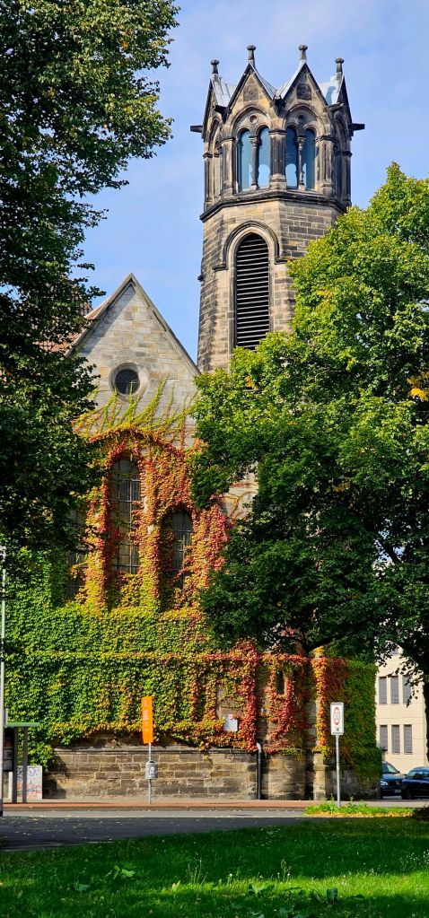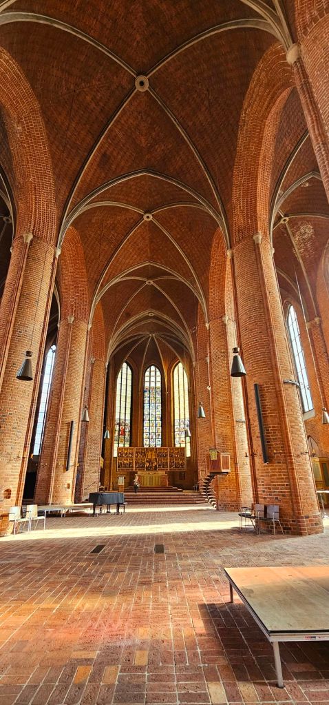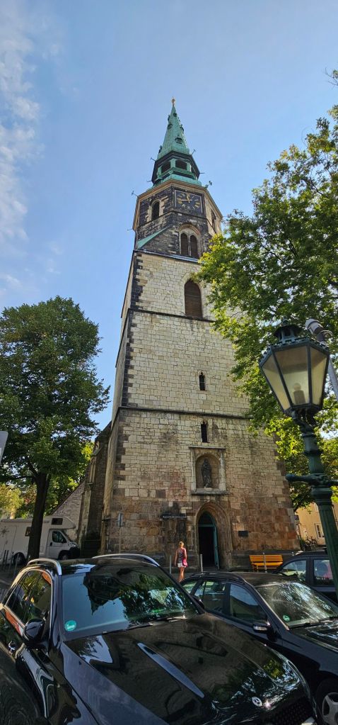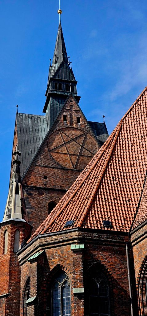 Marktkirche (Market Church) was built in the 14th century. Inside, the building is mostly empty with a few chairs, no pews. It also has a pentagram on its western tower. This was used by pagans and adopted by early christians. I don’t think my mom would approve.