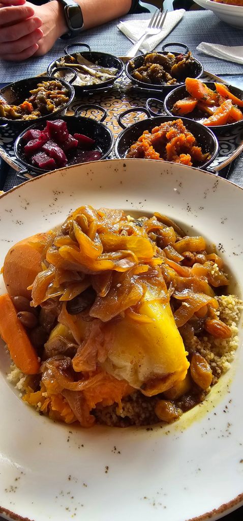 Now, there aren’t Jews living there, but the homes continue to be painted blue. Tourism is the main industry of the city, so vendors and sellers are everywhere, and restaurants are plentiful and delicious. For a late lunch I bought two dishes to try and they both were amazing.