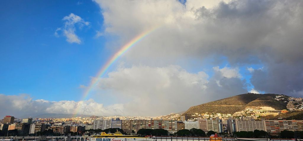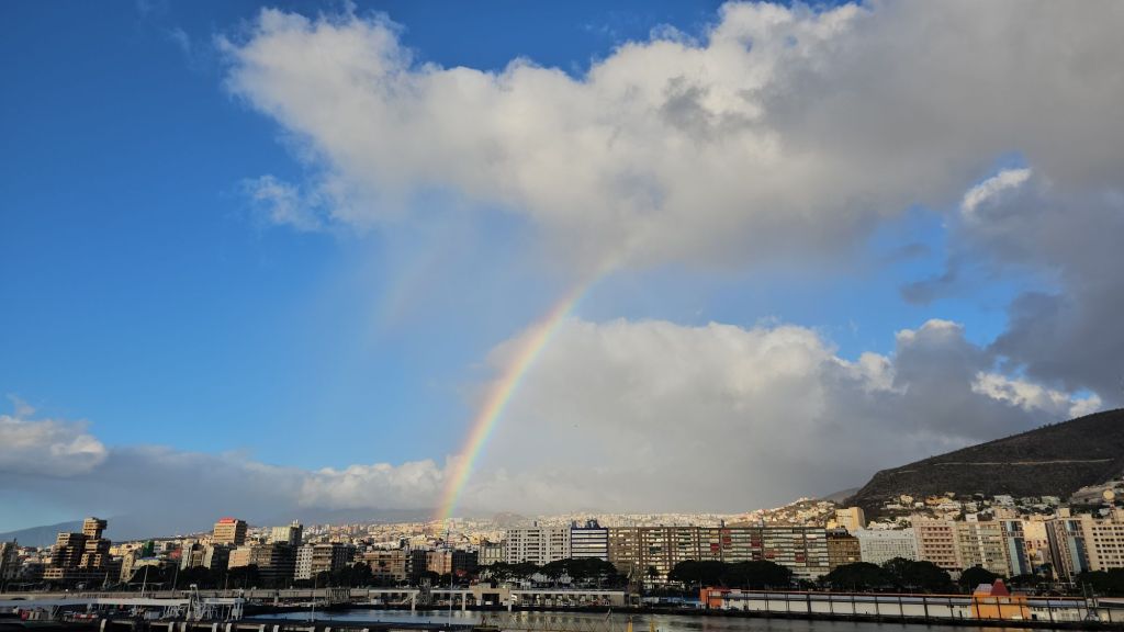 When I made it to the breakfast area, the sun was really coming up, and rainbows began forming. Over the next hour, I sipped my tea, ate breakfast, and watched multiple rainbows appear over the island. It was quite the welcome that Tenerife was putting on.