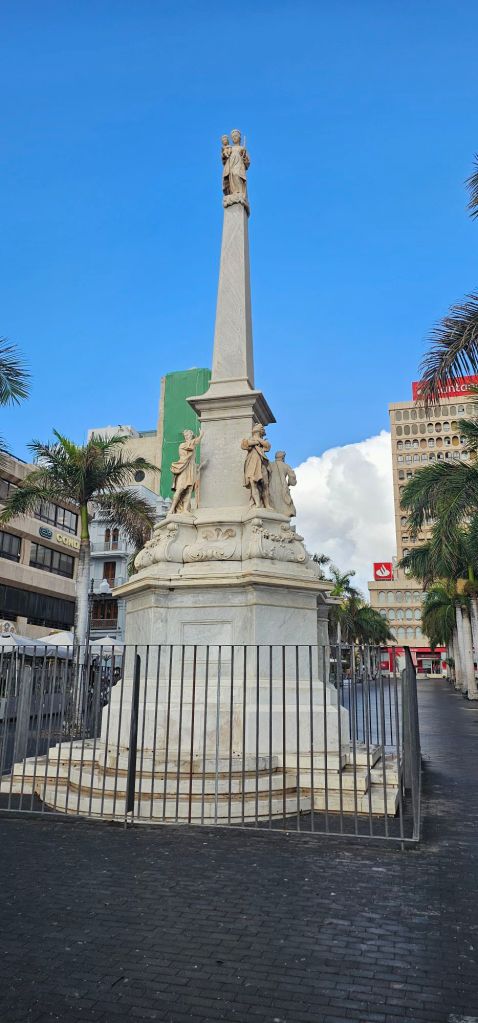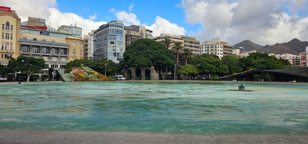 The plaza has a lake (it was drained for winter when I was there) and a fountain. There is also the Insular Palace of Tenerife, the Palace of the Charter, and the Candelaria Square all off to the sides of the plaza.