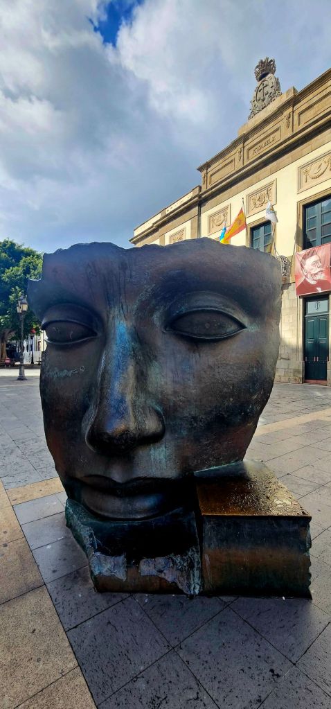 Across the ravine is the Teatro Guimera with a large bronze face sculpture.
