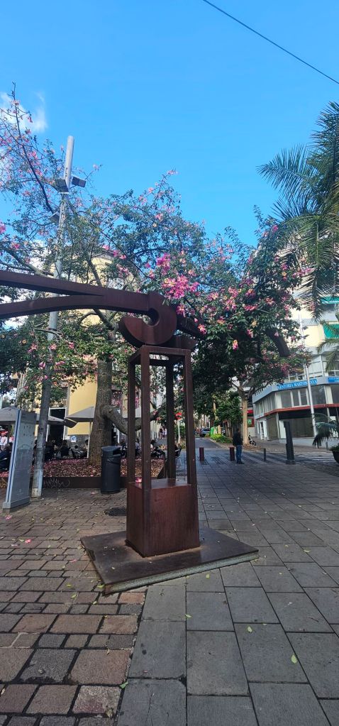 My target was to climb up into the city to Parque Garcia Sanabria. This green space has several fountains and statues throughout it. There is also a floral clock at its entrance.