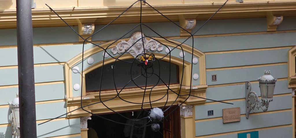 Behind the Plaza de Principal is the Museum and the Circulo de Amistad XII de Enero. It was cute to see such a serious-looking building wearing a Halloween costume of a spider and her web above the door.