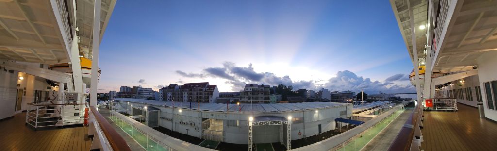 Dawn arrived as we slipped into port at Pointe a Pitre in Guadeloupe. I was back to euros and French as Guadeloupe is under France’s domain.