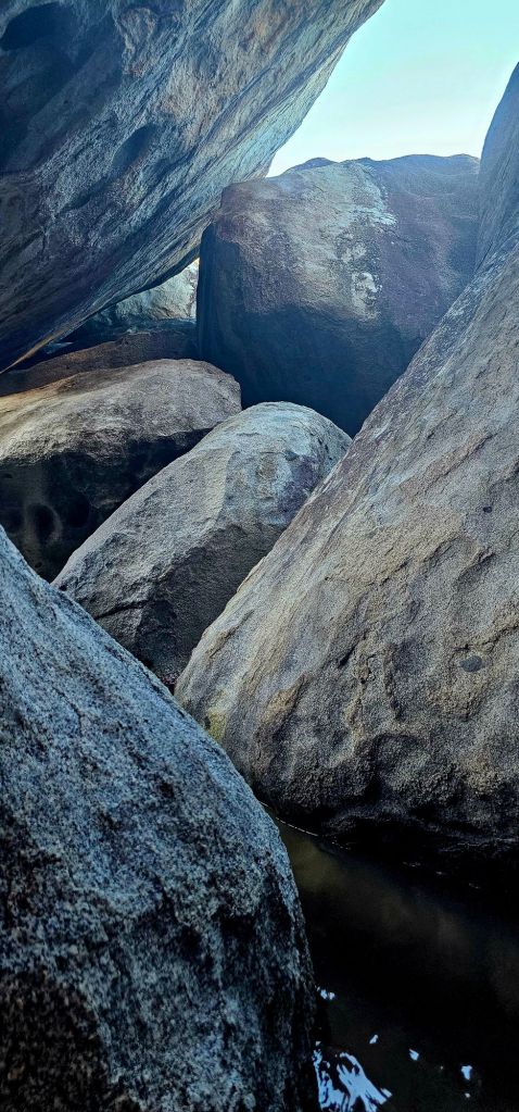 These boulders make for some fun caves and canyons to walk through in low tide. High tide would be harder.