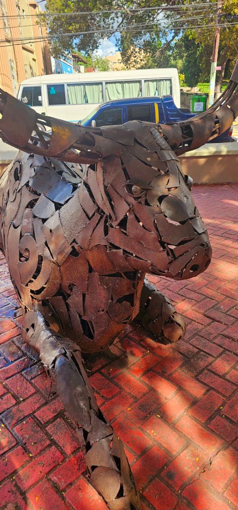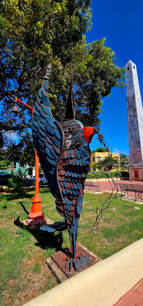 We started our walk with Mario and a police officer stopping the traffic so that we could cross the busy Av. Libertad to the Parque del Obelisco. This is a small park that has a monument and several iron sculptures.