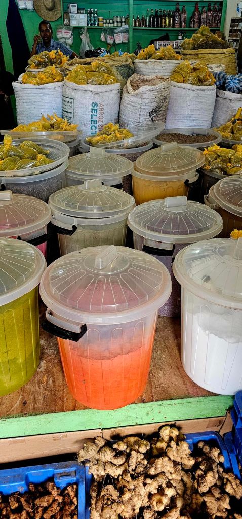 From the church, we circled around back to see some local shops that were selling spices, produce, and meats. The lack of refrigeration with the meats caused some concerns among group members.