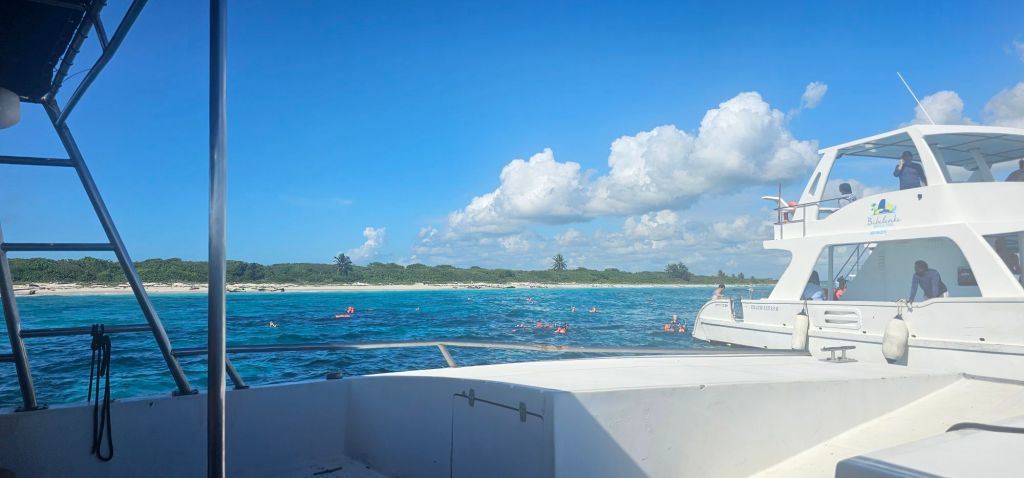 Our catamaran held about 40-50 passengers and played way too loud music on the way to the island a slow 40 minutes away. Our tour guides also gave no instructions about timing, but we were probably too deaf to hear them anyway.