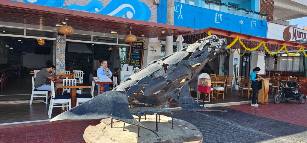 The town had an interesting water park on the beach to go play on as well as shops and restaurants.