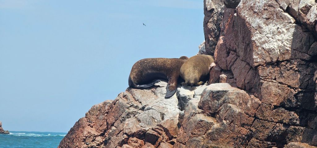 Speeding on our way, we arrived at Islas Ballestas and could see Humboldt penguins, Blue-footed boobies, seals, crabs, and Guanay guano birds.