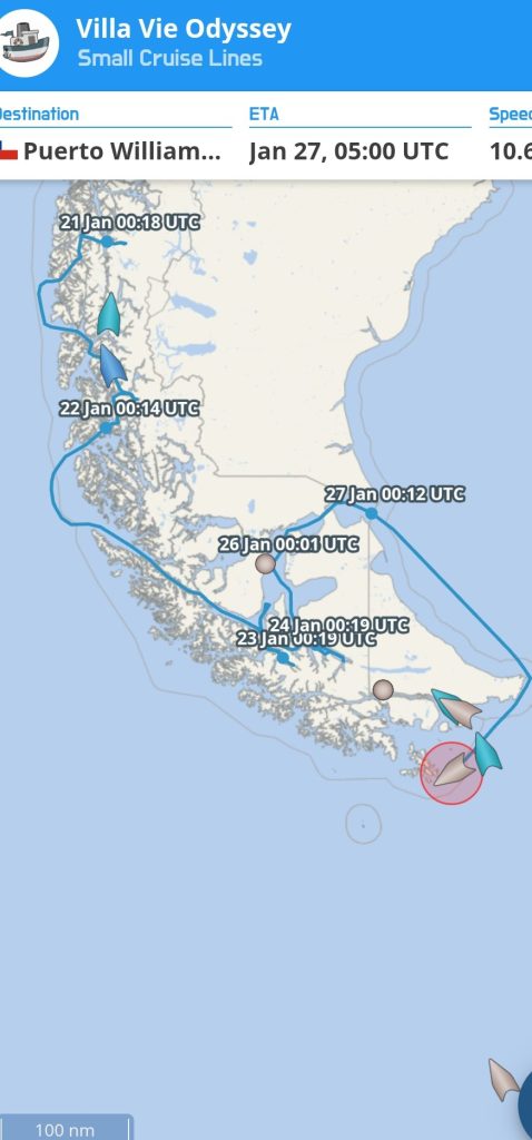 The further south, the rougher the seas, and many ships need to be able to make changes. In order to continue to avoid bad storms in the Atlantic when we left Punta Arenas, the Odyssey turned north to the other end of the Magellin Strait and down around the tip of the continent.