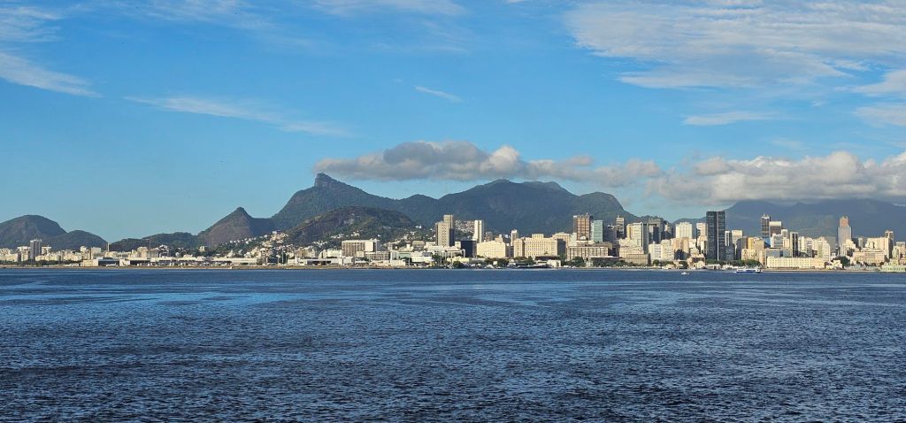 Unfortunately, one of our crew members was in an emergency at the end of the first sea day, and we needed to get them to shore for medical help quickly. The helicopters were not running according to the Coast Guard, so we needed to come into port as a whole ship even though there was no berth available for us. About 11:30 p.m. last night, we arrived near the port of Rio de Janeiro, and an emergency tender was sent from shore out to the boat to get the crew member who needed the medical attention.