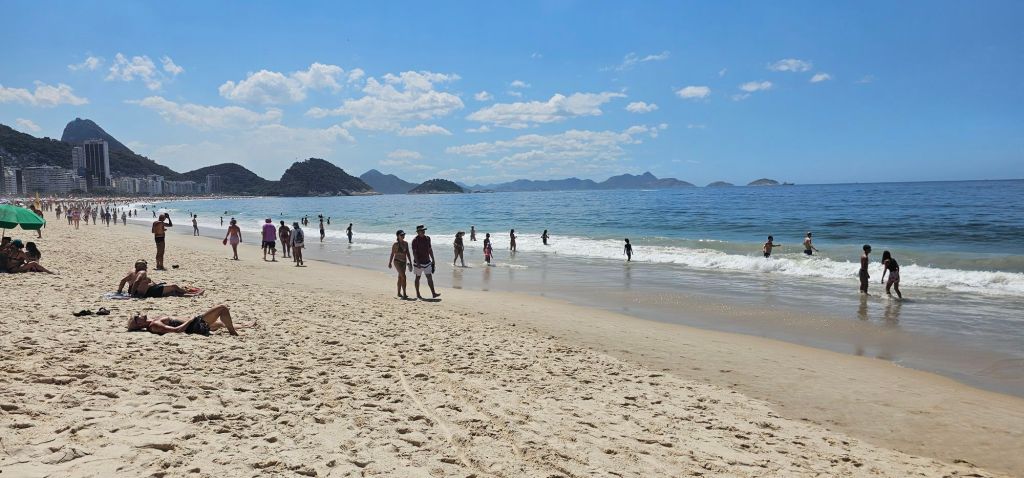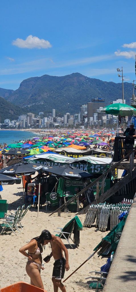 This beach was narrower, so it seemed more crowded. We never went to the water line, so I’m not sure how the water was. At Copacabana, it was a little rough.