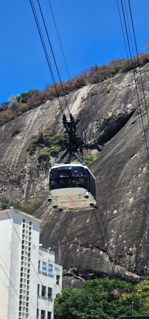 According to our guide, the name Sugarloaf comes from the 16th century when the sugar trade was the largest trade in the area. The liquid sugar was taken from the sugar canes and put into ceramic molds for shipping. The molds resembled loaves of bread, hence the name Sugarloaf.