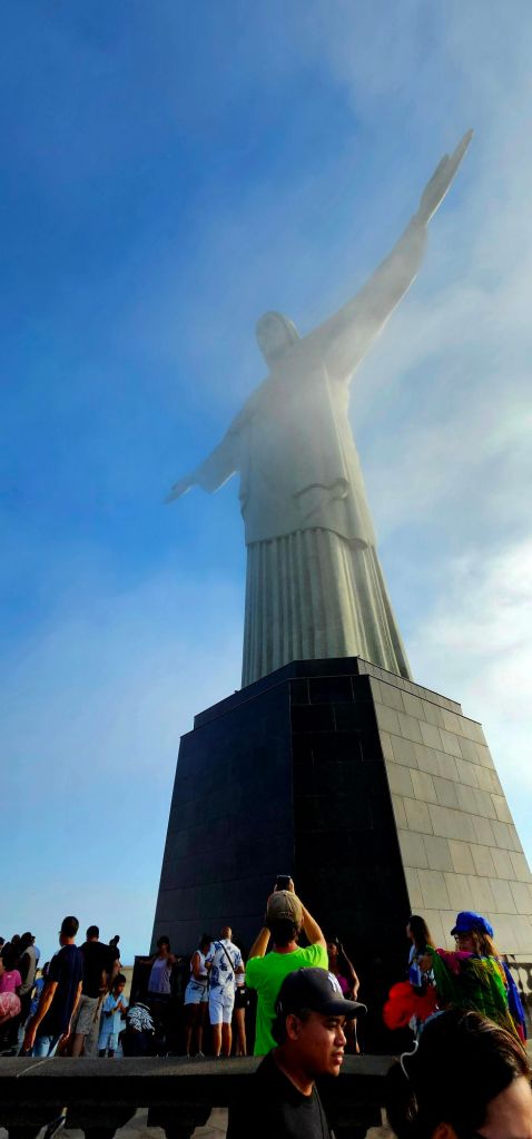 From where the bus parking lot lets people off or the train, there are elevators and then escalators that can take you all the way up to the base of the statue. There are also stairs, a little better than 200 stairs to climb. Our guide just said if you’ve been sinning, you should take the stairs, but if you’ve been living a good life, the elevator is enough.