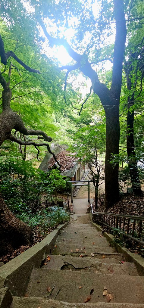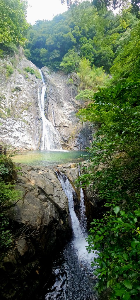 We continued walking down, and the trail was fairly steep but manageable. The waterfall was in several sections, and there was one offshoot for a castle ruins path. I was a sweaty mess and chose not to go on that one, but Claude and Paul did. Their report was that it wasn’t worth it.