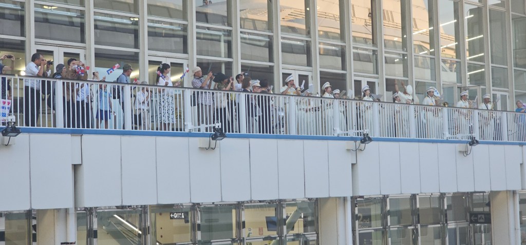 One of the things that I admire about Japan is that all of the cities have had welcomes and goodbyes for the ships. Usually involving a band or dance, but sometimes water cannons.