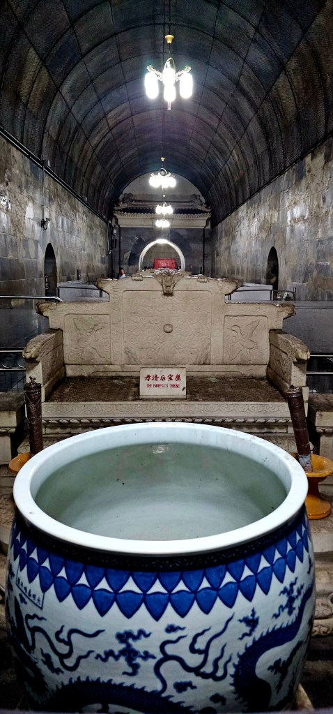 Realizing our mistake, we asked the driver if we could have one more hour to go to the Ding Ling tombs. Luckily, he was able to accommodate us, and we went the 7 minutes away to the only excavated palace tombs. The Ding Ling Tomb costs 60 yuan. I should mention that almost all of the sites are free or half price for people over 60 years old; they just need to show their passports.