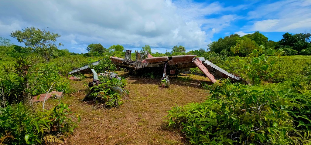 The first was looking at some World War II remnants on the island. In several spots around the island, you can see where the Japanese who were occupying the island at the time had set up a base. After Pearl Harbor, the Americans eventually came and bombed the island, focusing on these Japanese installations. Once the Japanese left or retreated from the area, these bombed-out barracks were just left in the jungle and on the land.