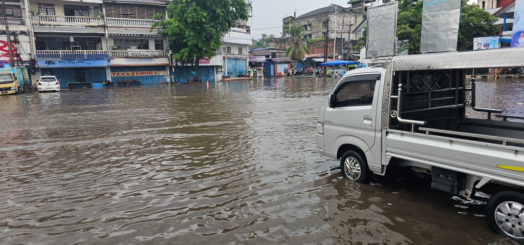 The walk itself was fun, dodging congested water-filled streets. And there were lots of children chasing us, trying to get our signatures or high fives, some even wanted pictures with us. We went past one area where the drainage area was severely flooded, and some of the boys were swimming in and using old Styrofoam packaging as water wings or life jackets. Their smiles were great to see, but I was slightly disgusted with the water.