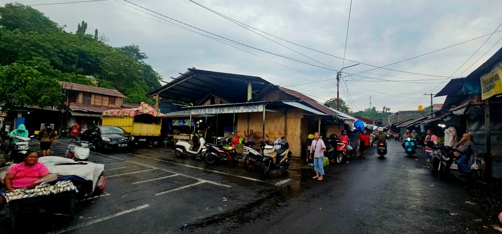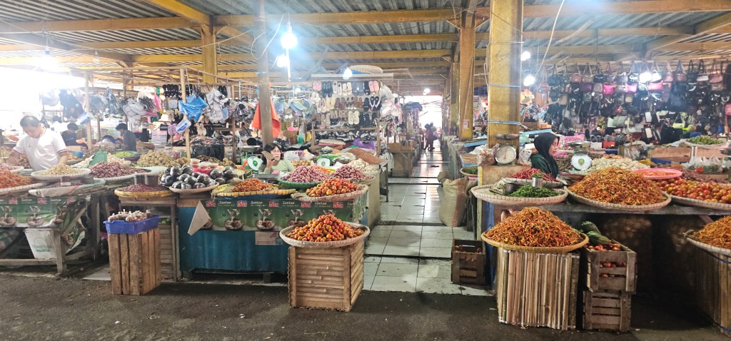 We made our way to the local market, which was only about half open. The fish/meat section was done for the day, and it seems like several of the ready-made food stands were also not available. There were some deep-fried wraps with banana and different combinations of banana/mango, banana/cheese, banana/cinnamon, and a few more I wasn’t sure of that were available, and it cost about 5000 rupiah, which is about 30 US cents. Most of the vendors’ things, whether it was a piece of chicken or a dessert-type item, were about 5000.