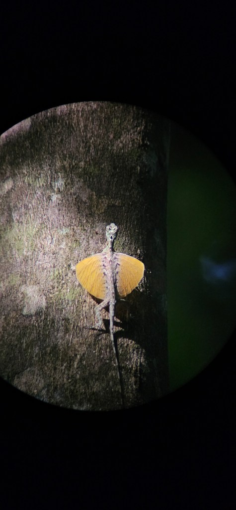 A little further down the pathway, we could hear the cicadas, and our guide stopped to point one out to the group and take a few quick pictures. While we were there, on a tree slightly behind the one with the cicada, a lizard started going up, which I thought was initially a butterfly. Some of the group had already gone ahead, so we took a few quick pictures and videos of the lizard before scrambling to catch up.