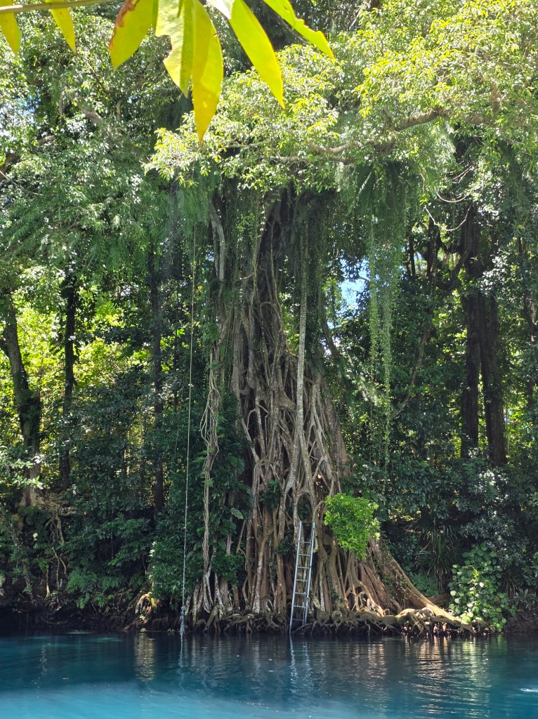 Matevulu Blue Hole is a short 300m away as the crow flies from Riri, but the roads and Google are deceptive. Instead of returning to the main road and going to the next turn-off, it looked like we could just cut across on a dirt road. Technically, it isn’t wrong, the road does connect them, but the 2 fallen trees made the road unpassable. Instead, our shortcut ended up being a long drive down some truly bad roads.
