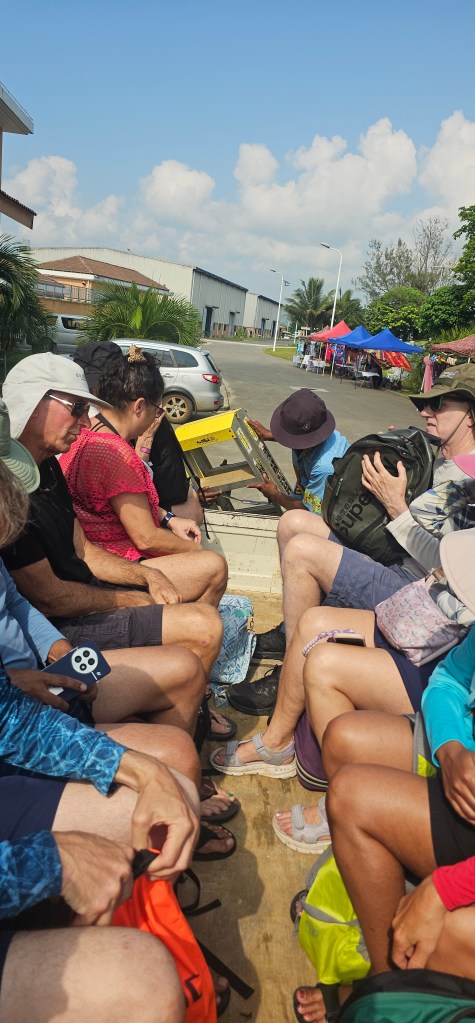 The morning didn’t start out on a high note with the company being 30 minutes late to pick up us 13 passengers. It was also a surprise to be loaded into the back of a truck bed. To say we weren’t prepared for that amount of exposure was putting it mildly. It wouldn’t have been bad if the ride hadn’t been 90 minutes on some suspect roads.